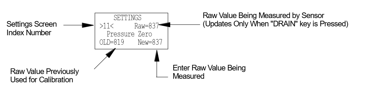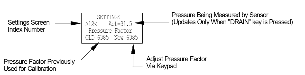 步驟四 轉(zhuǎn)到設(shè)置屏幕#12。使用按鍵板向上或者向下調(diào)整壓力。按下排水鍵“ Drain”,一個(gè)新的測(cè)試值會(huì)出現(xiàn)在屏幕。